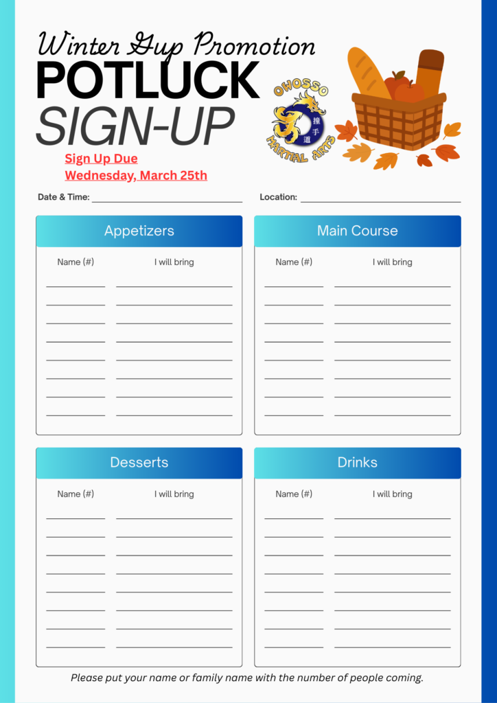 Winter Gup Promotion Potluck
