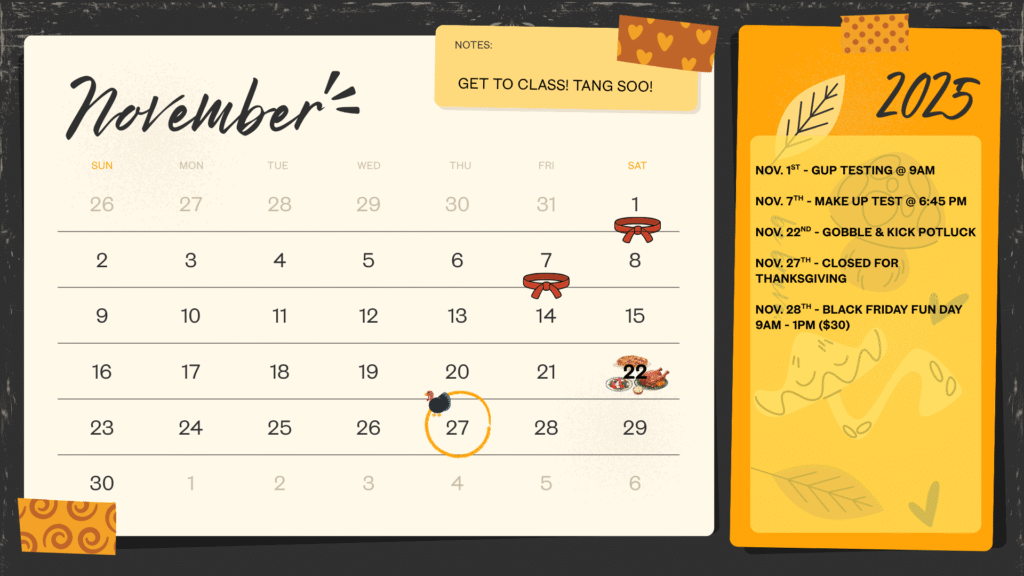 Let’s work together to make our dojang a place where every student feels valued. A place where we push each other to be better—not just stronger, but kinder. A place where respect is not just a word of the week, but a way of life.
